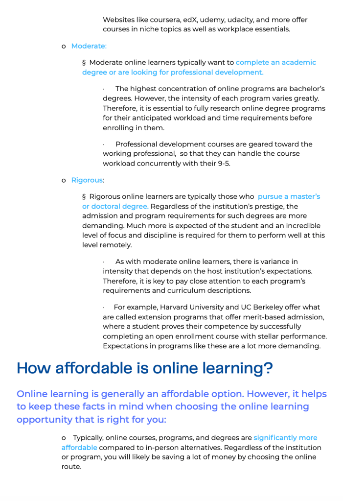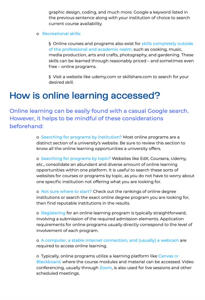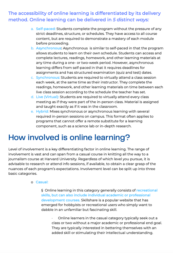 Online Learning Informational Guide